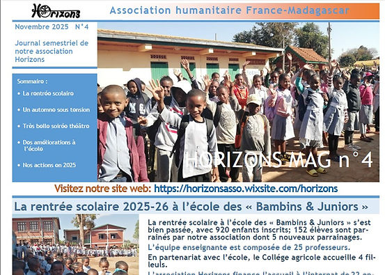 HORIZONS MAG viendra semestriellement vous informer sur l’école des Bambins et Juniors, sur ses activités et ses événements, et sur les actions menées par notre association pour la faire progresser.